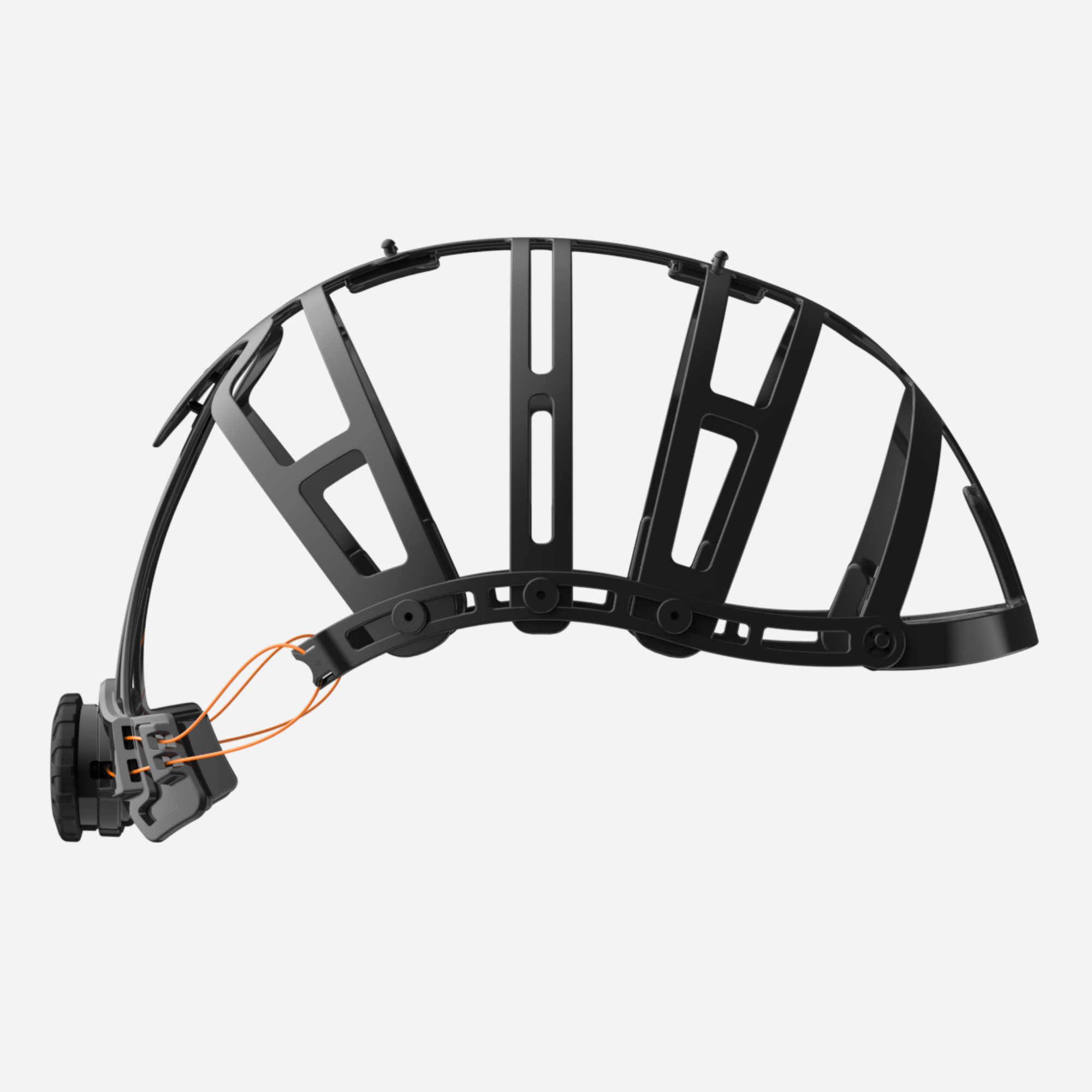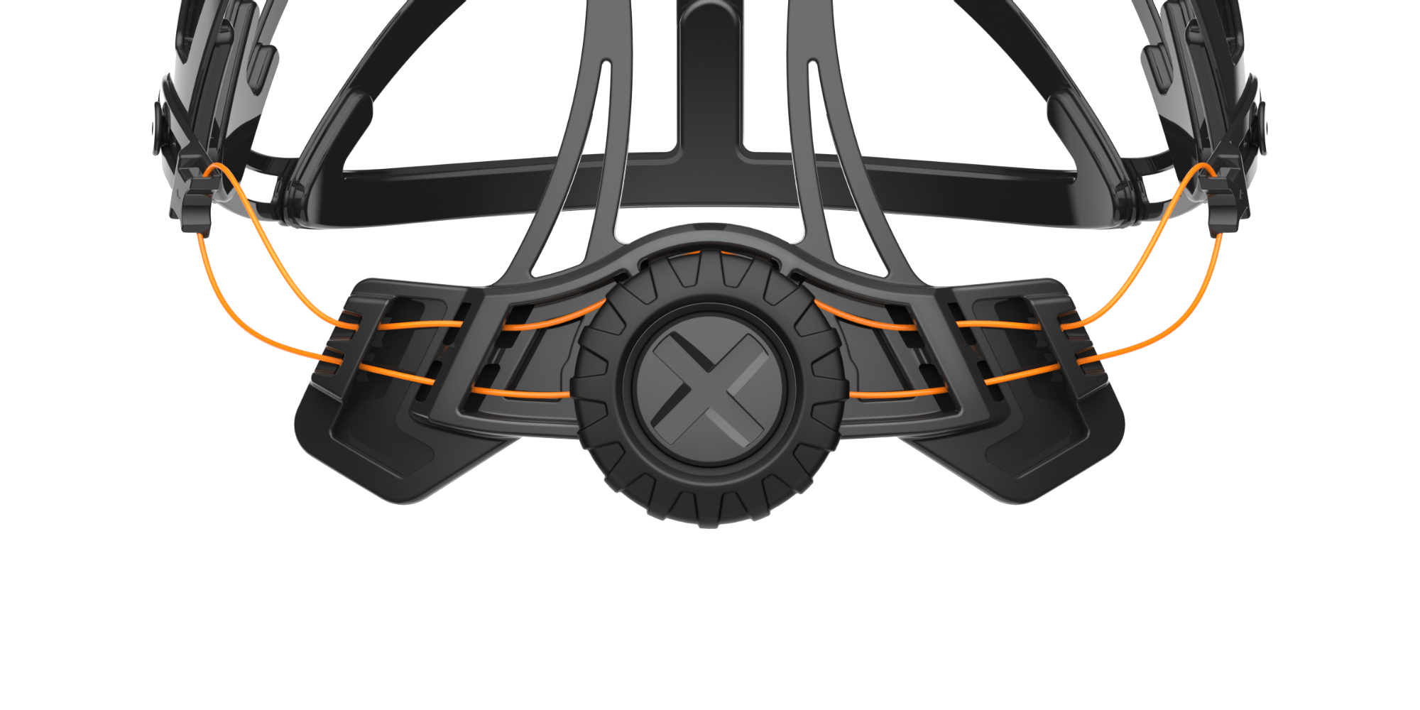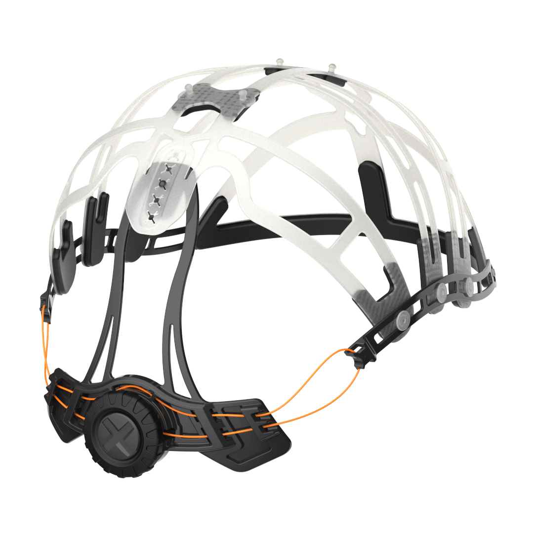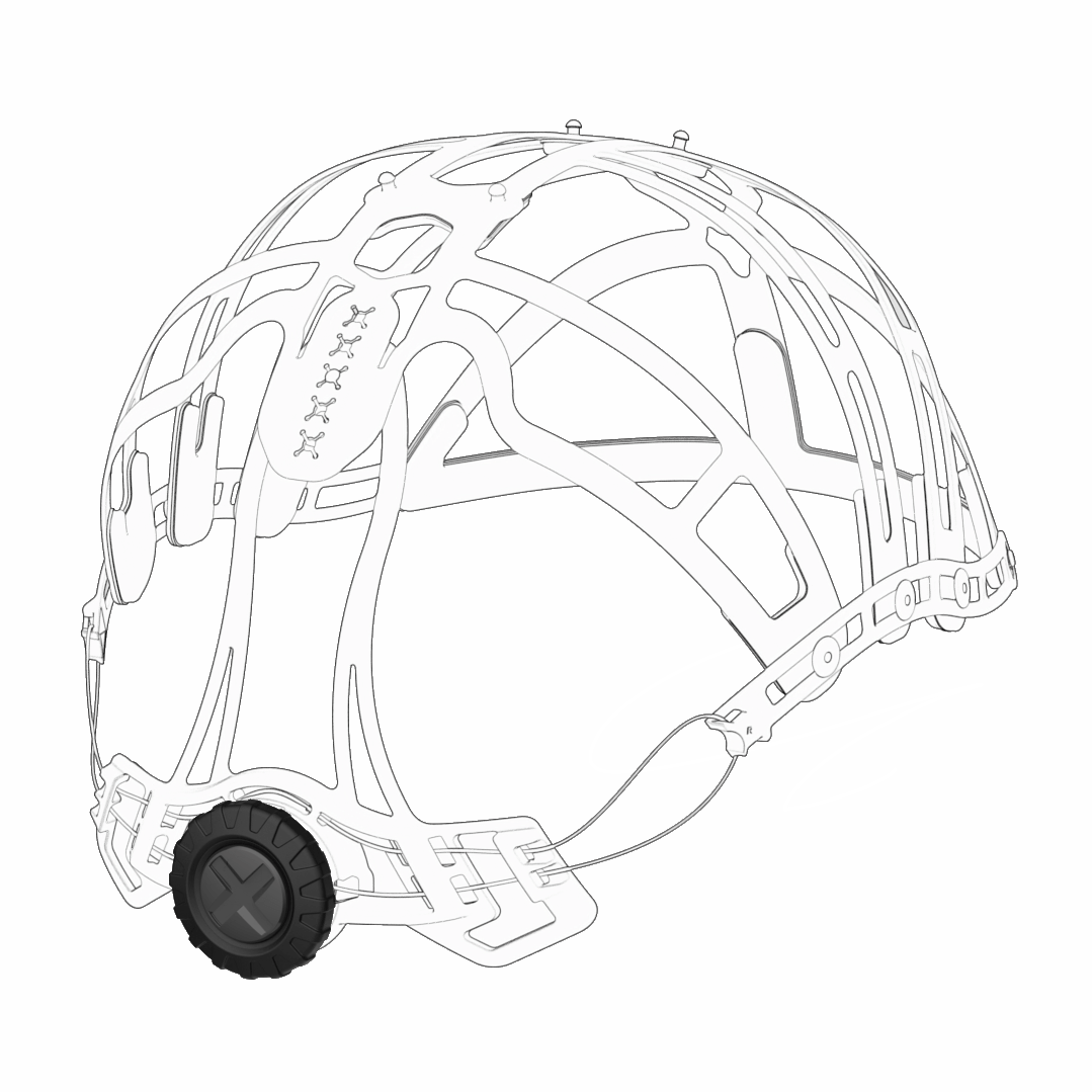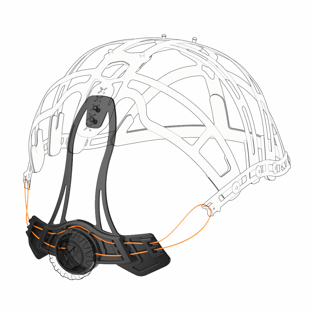 At the core is Flux 360°, a patent-pending system that delivers full-head stability at just 50 grams. A dial-and-yoke mechanism ensures even tension with minimal cabling, snapping into EPS baskets or adapting seamlessly to hardhat webbing. The ambidextrous dial tightens in either direction, can be customized for branding, and even comes in a serviceable, Berry-compliant version for field repair.